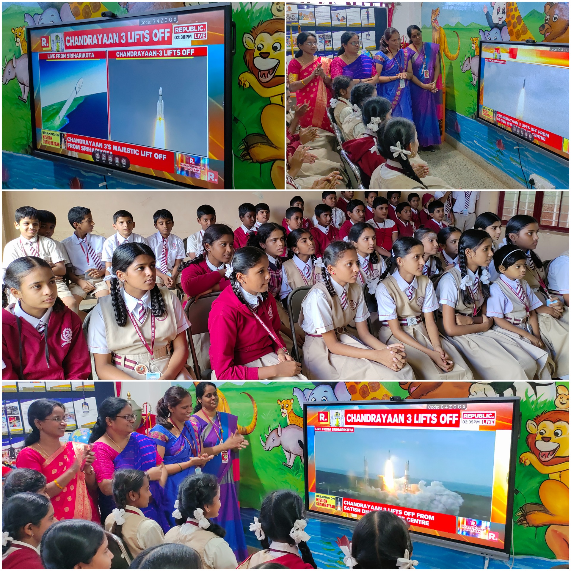 Chandrayaan-3 is a project undertaken by the Indian Space Research Organisation (ISRO) to achieve a successful landing on the Moon’s surface and deploy a rover to conduct experiments and gather valuable data. A live telecast of the launch of Chandrayaan-3 was shown to students from Classes 6 to 10.