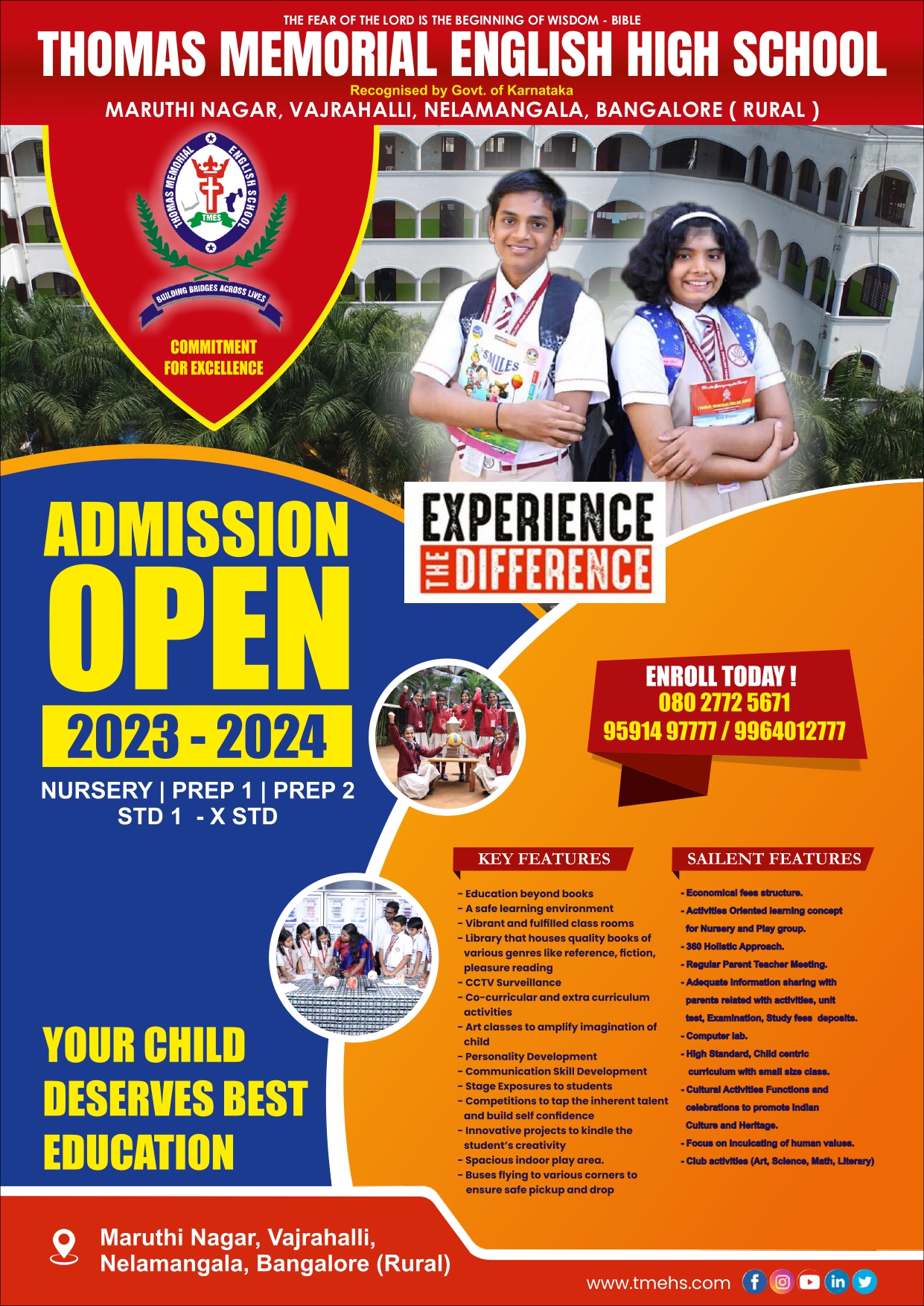 Thomas Memorial English High School (TMEHS) is named after Brother Thomas, the eldest son of Sister Josna Francis Antony, Founder and President of The Touch India International Ministries by whom the school is presently administered.