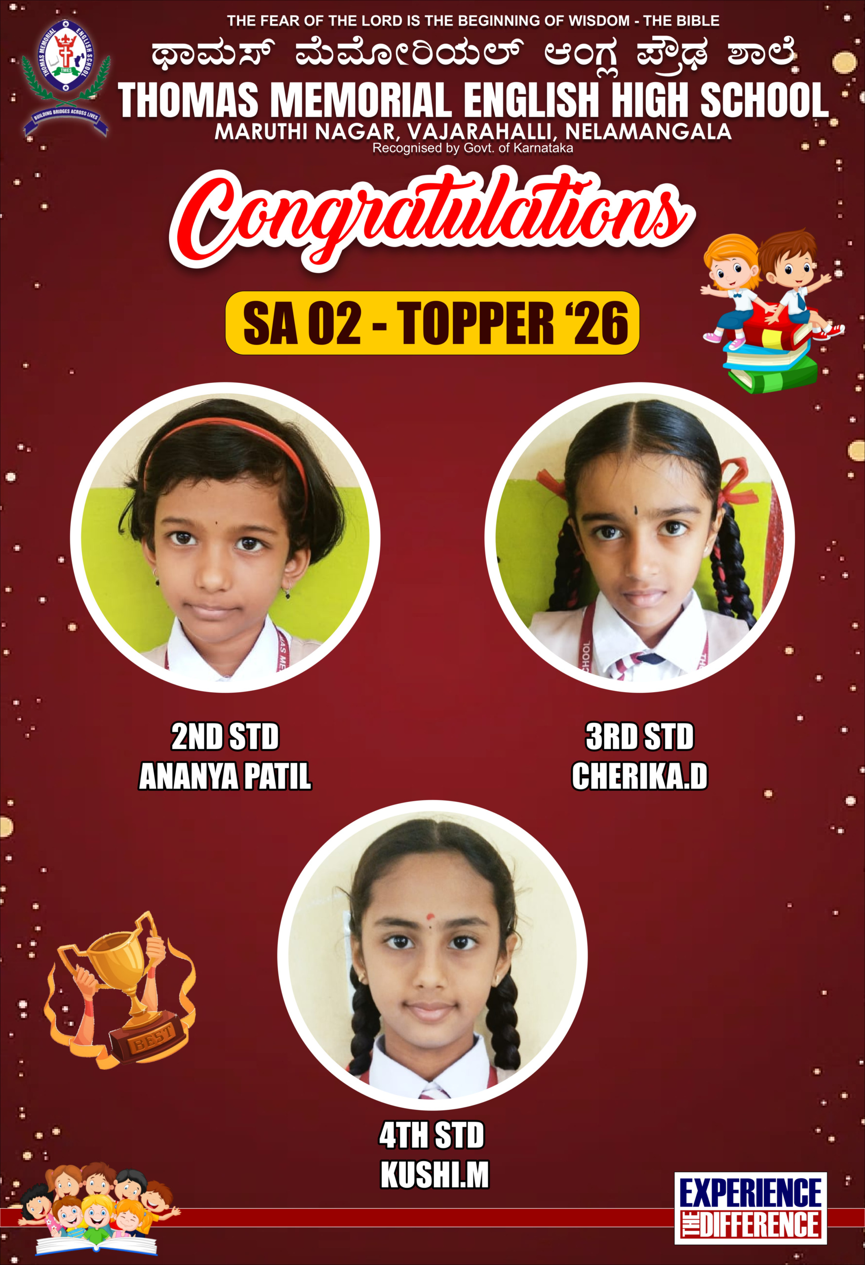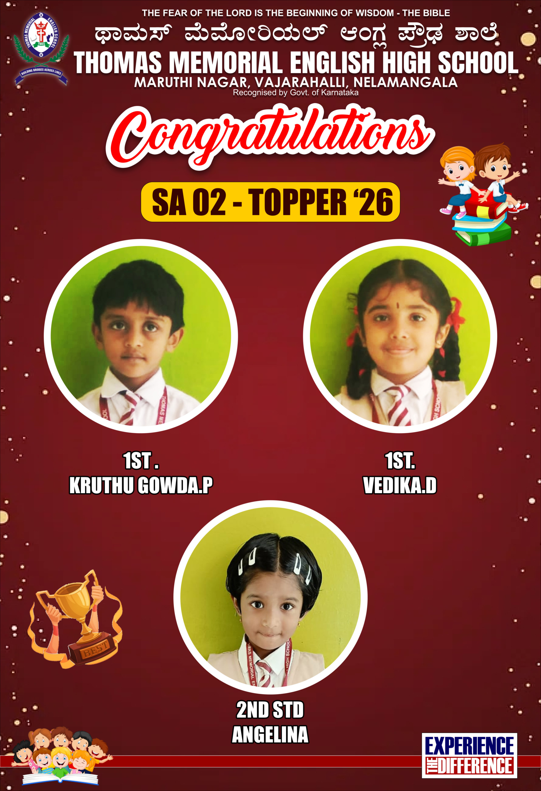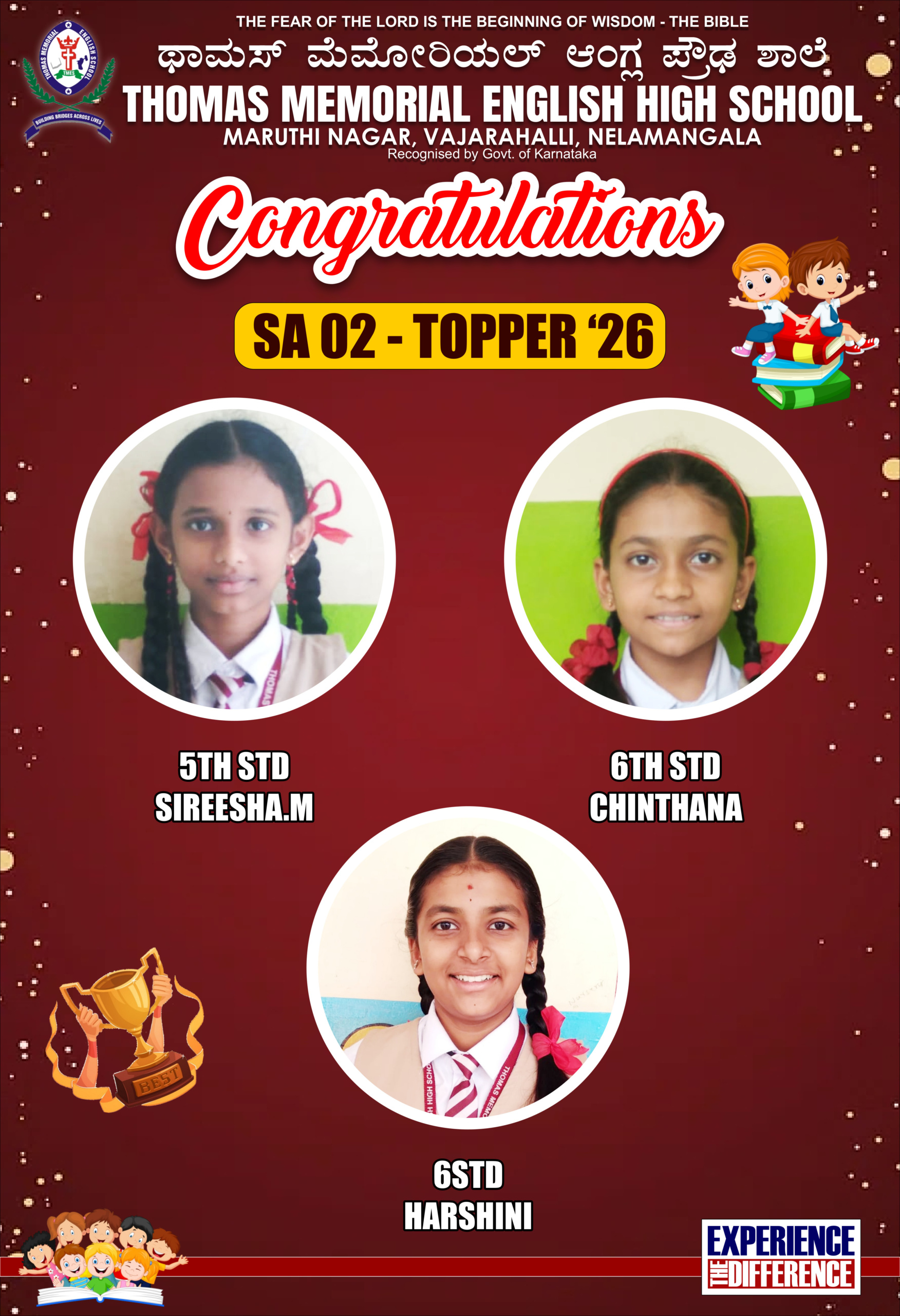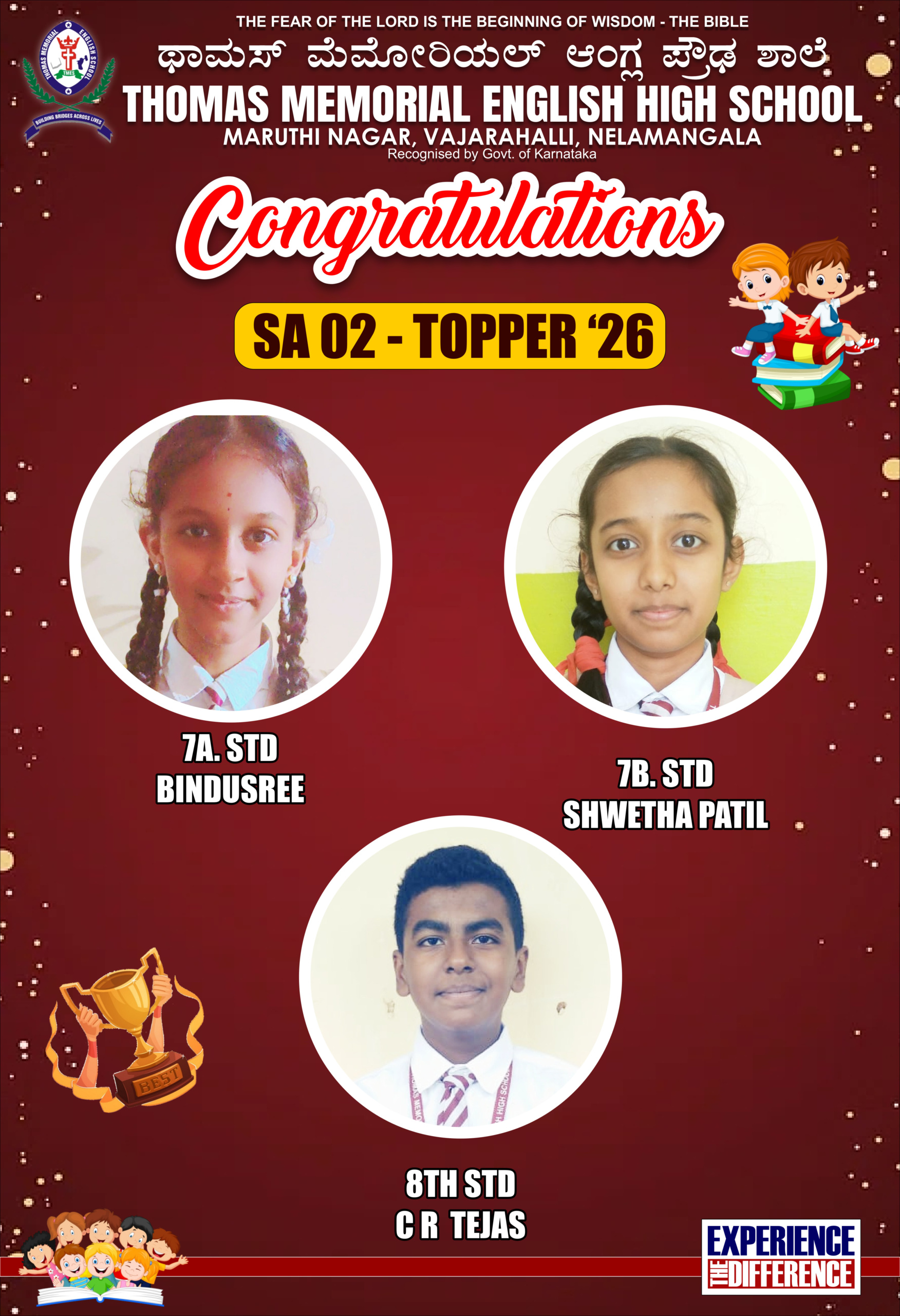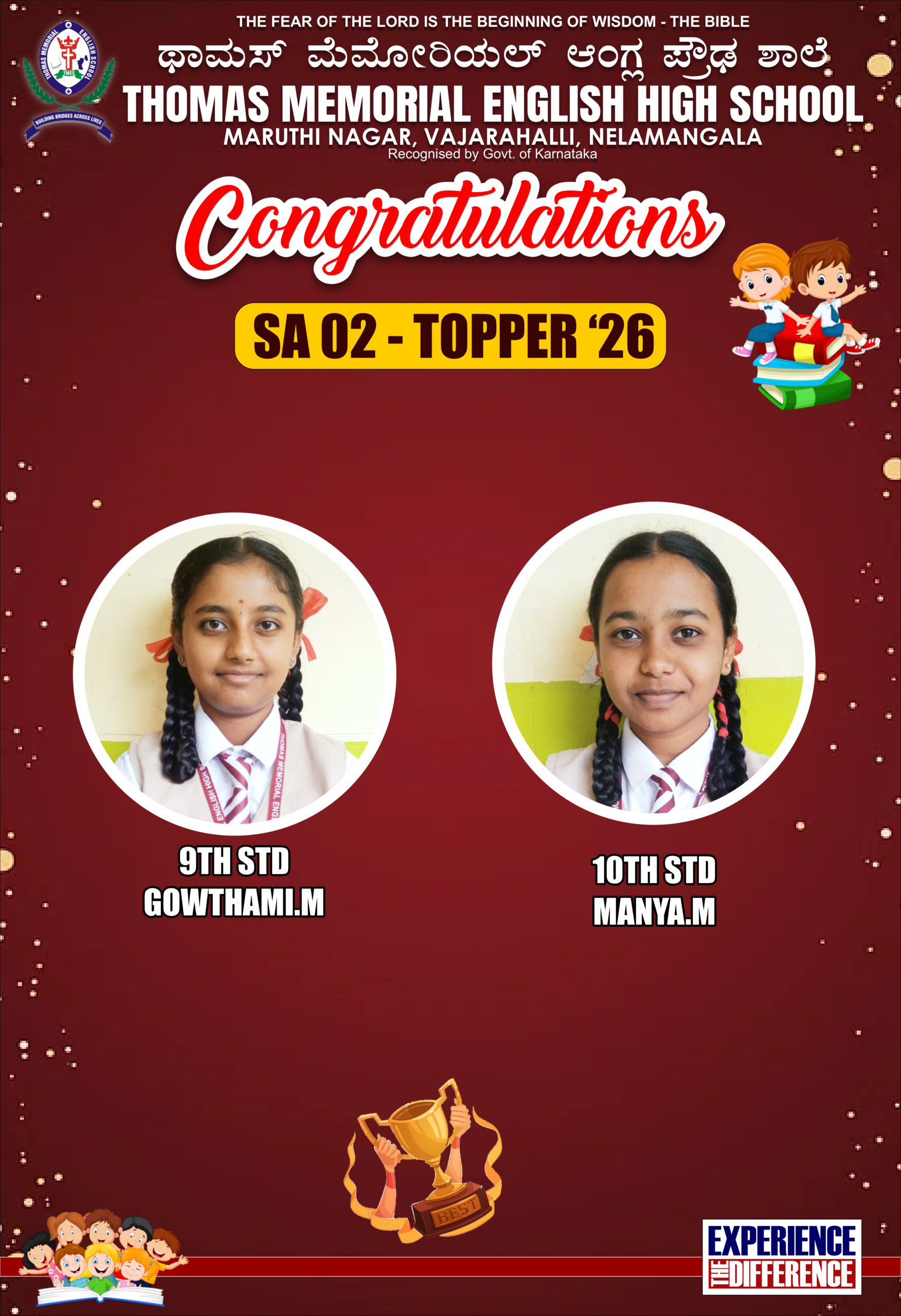 At Thomas Memorial English High School (TMEHS), we take immense pride in recognizing and celebrating the outstanding academic achievements of our students. Our toppers are a reflection of dedication, discipline, and the high-quality education imparted at our institution.