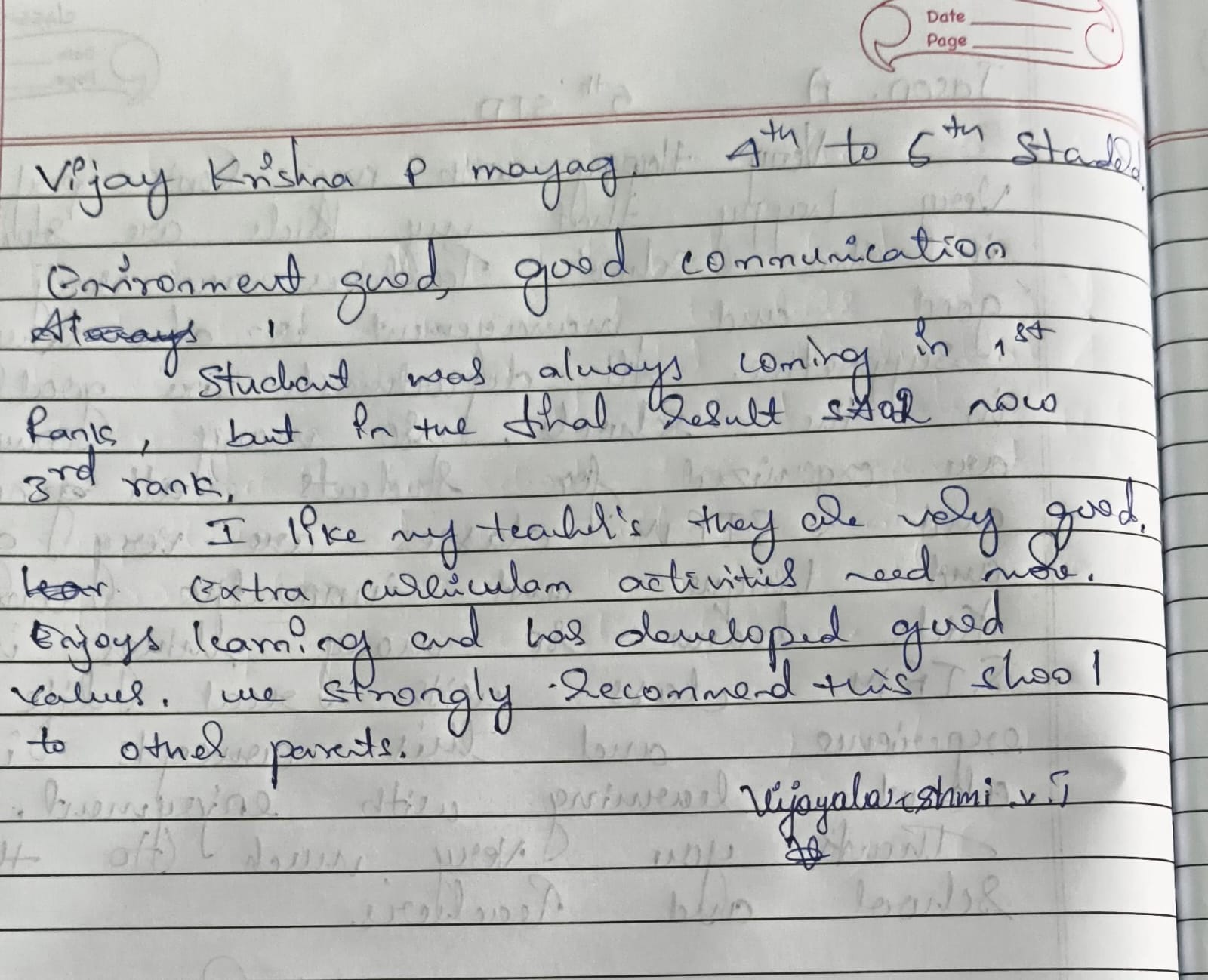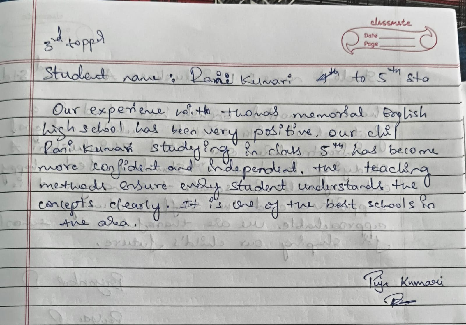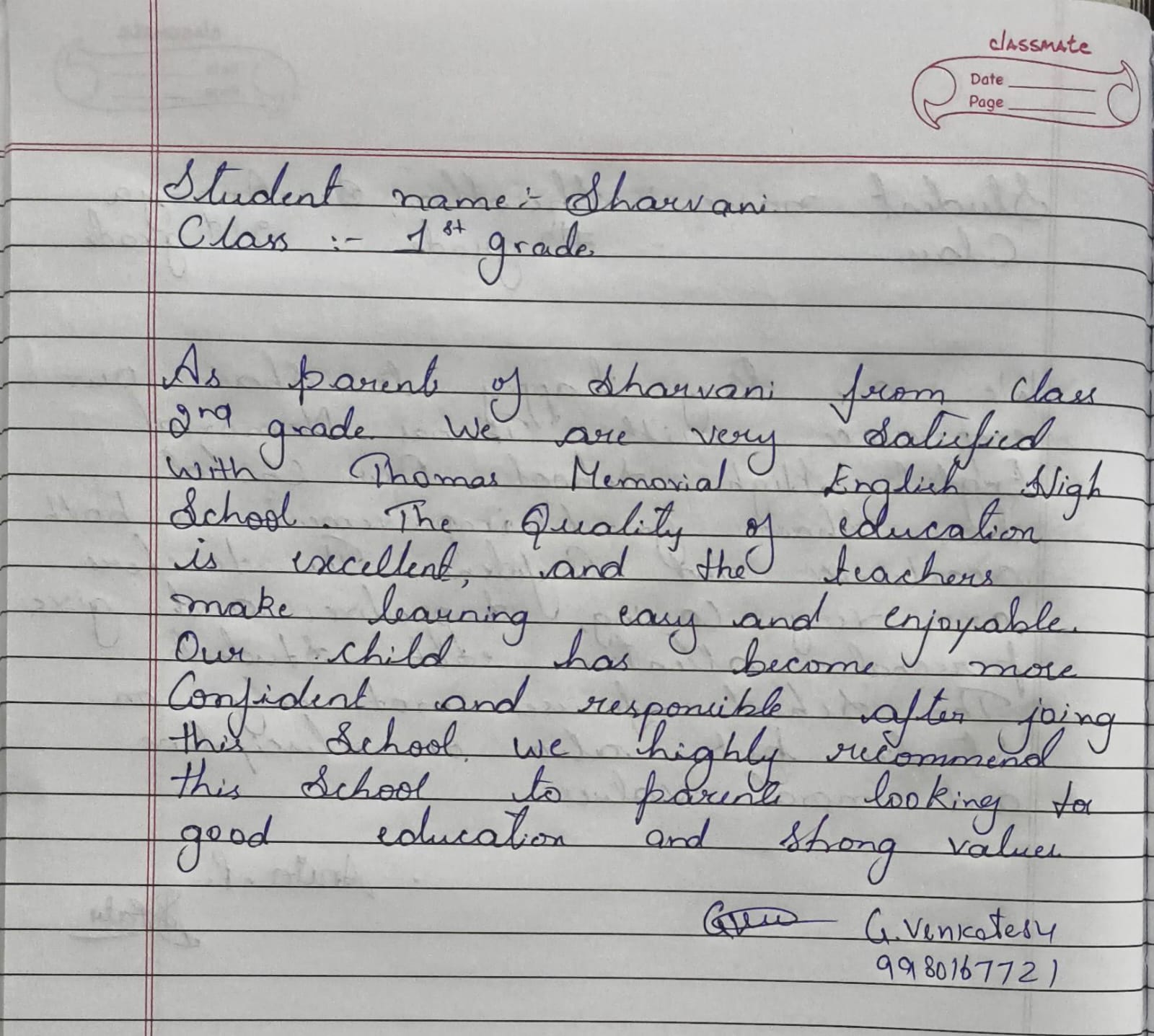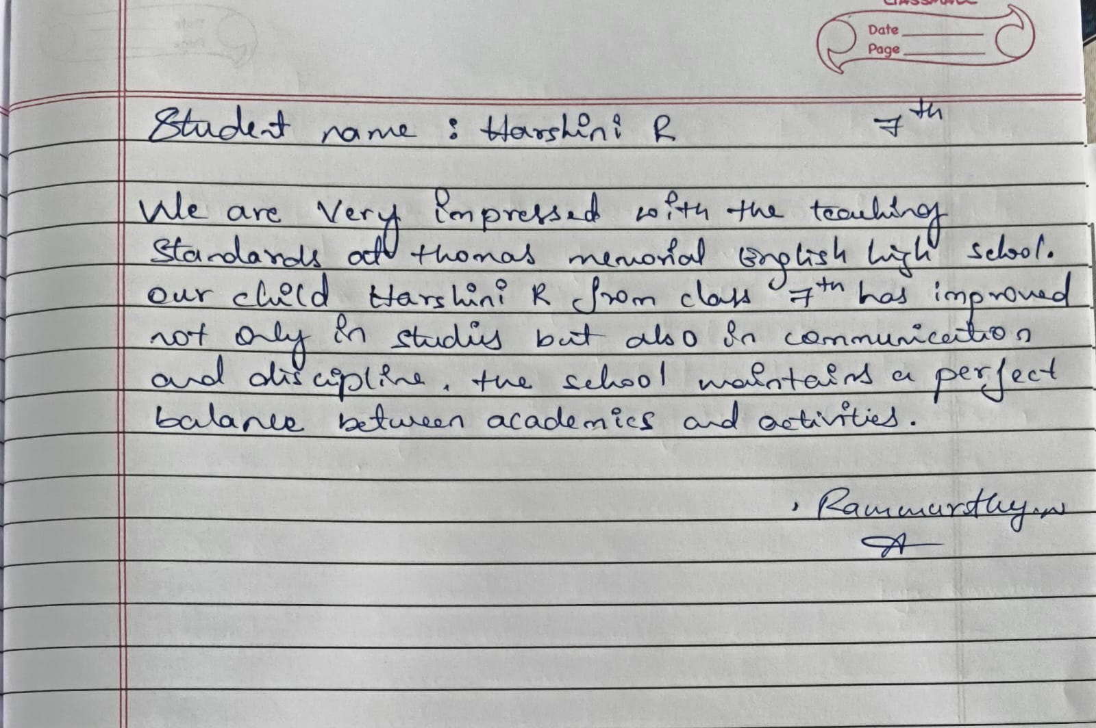 At Thomas Memorial English High School (TMEHS), the trust and satisfaction of parents mean everything to us. This page showcases genuine handwritten reviews shared by parents, expressing their experiences, appreciation, and confidence in our school.